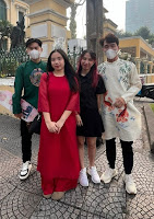 Saigon, just the second largest city in the country (Hanoi expanded its geographical boundaries because, after unification, Saigon seemed to be taking over the demographic top spot), is vibrant, cosmopolitan, bustling and surprisingly clean. Very little trash compared to the capital. The folk are much better dressed, though many of the younger ones were dressed in their best ao-dais for Tet photography.Last night we attended an early evening acrobatic performance at the Opera House, with much jumping, posing, body contortions, ball and pole tossing, Asian-movie style, but beautifully done in a charming balletic fashion with men and women presenting, in acrobatics the lifestyles in the city and country. Very pleasant way to spend an evening. The A-O Show. Dinner: a couple of banh-mihs--baguette sandwiches.